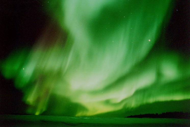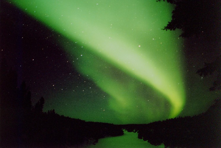 This was taken very early on October 4, 2003, beside Alexandra Falls on the Hay River in the Twin Falls Gorge Territorial Park, Northwest Territories. Photo details: Fuji Superia 800, 24 mm, f 1.8, exposed for 30 seconds. John
