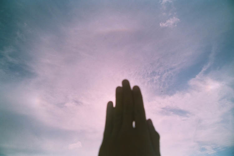 coronae, under a partly cloudy sky. As the Sun passed through transparent