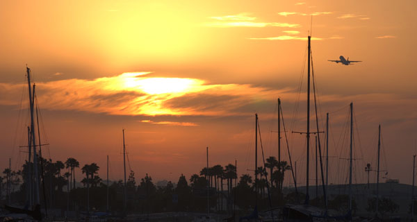 A sunset is seen near the airport and harbor in San Diego. Nikon D1H with