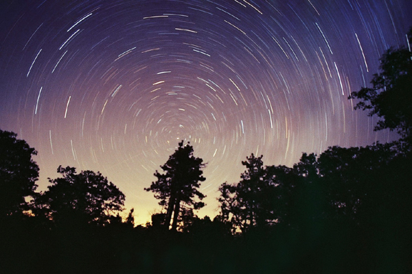 toward the Northwest. Approximately 40 minute exposure, glow over horizon