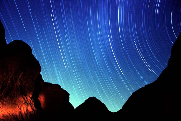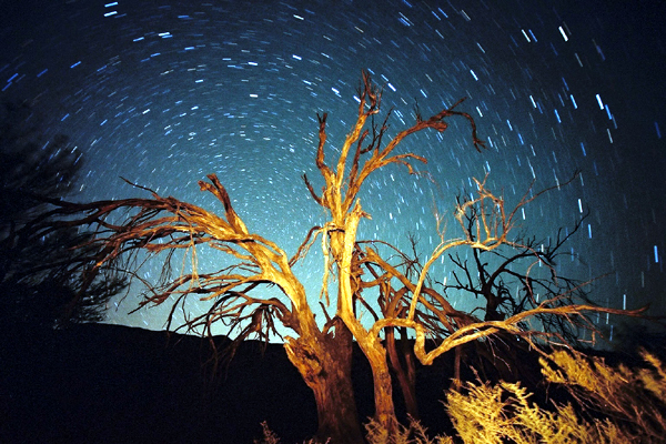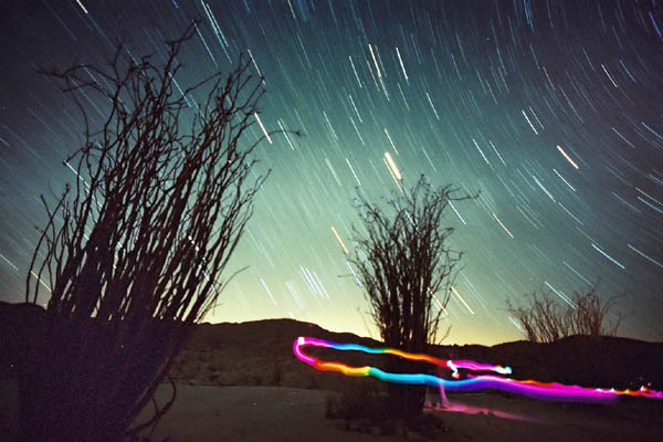 Trails and meteor shot at the Tamarisk Grove Campground in the