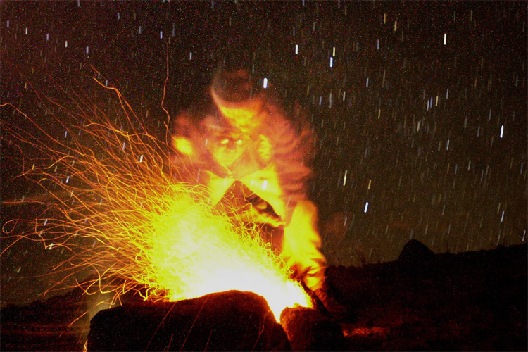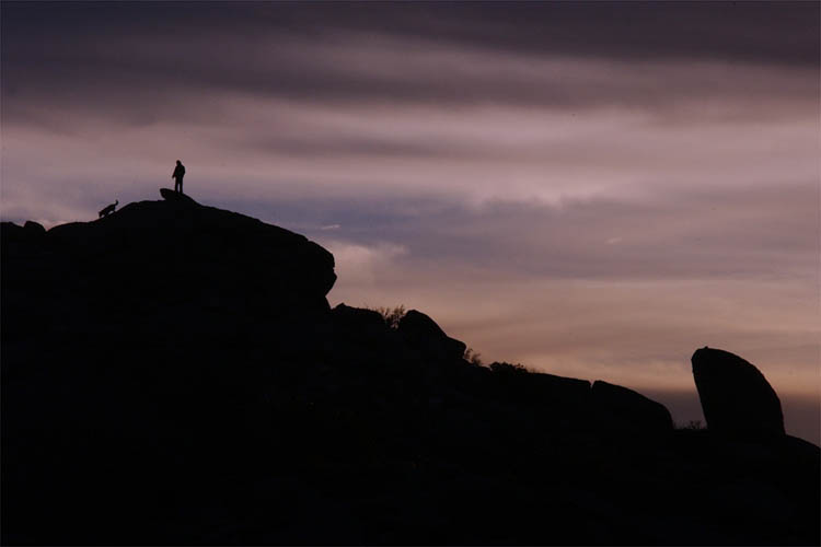 of a rock outcropping was shot with a super-wide angle lens. The rocks appears as mountains although they were 2 feet high. 8 minute exposure at