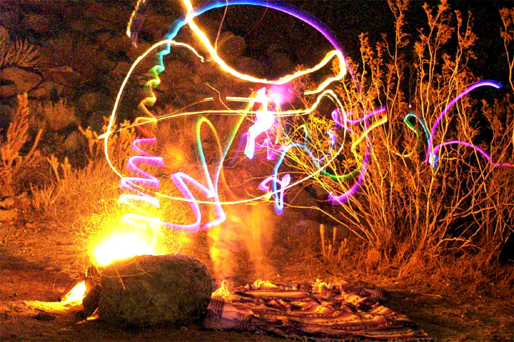 at f 5.6. The streak created by swirling a powerful Maglite through scene.