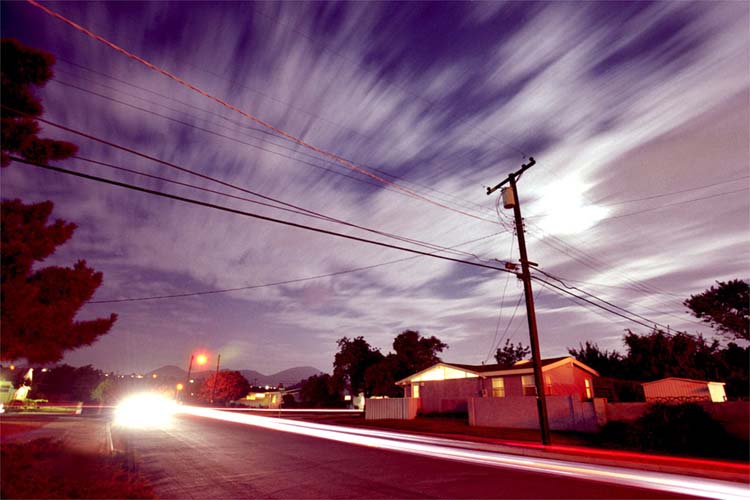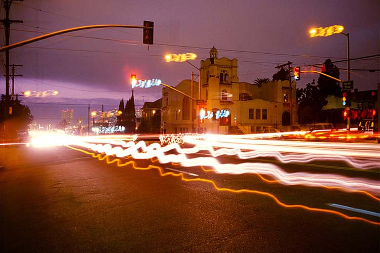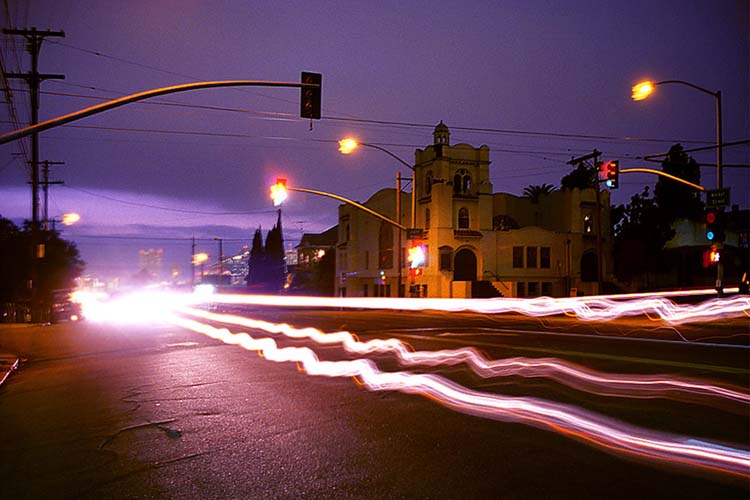San Diego, California near San Diego State University. 4 second exposure at f 11. I