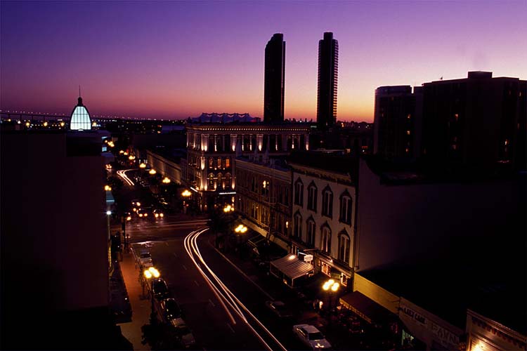 over Fifth Avenue in San Diego's historic Gas lamp Quarter.