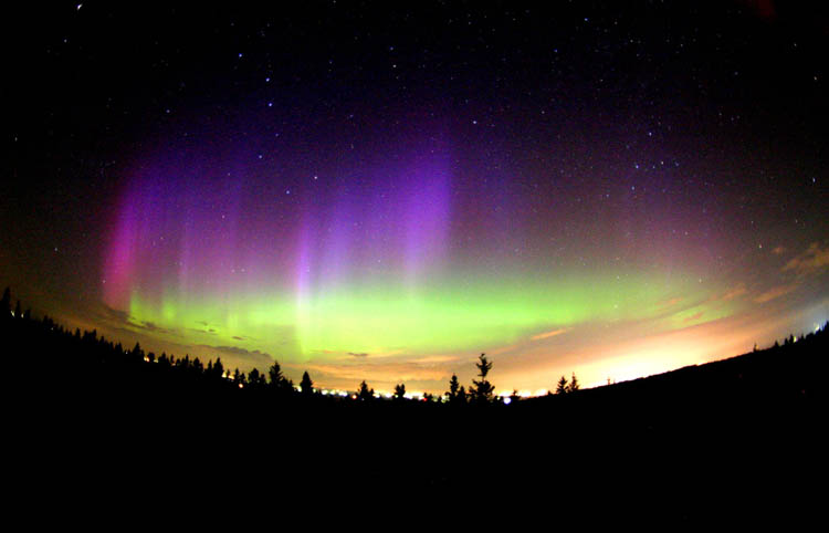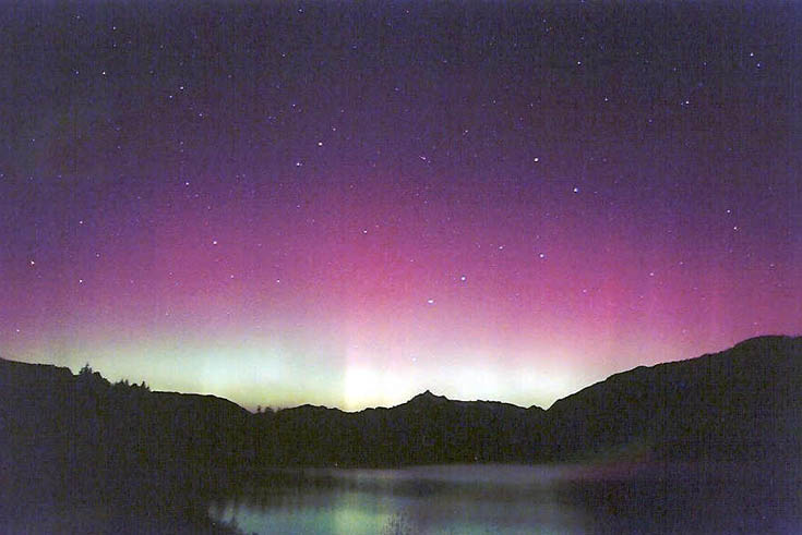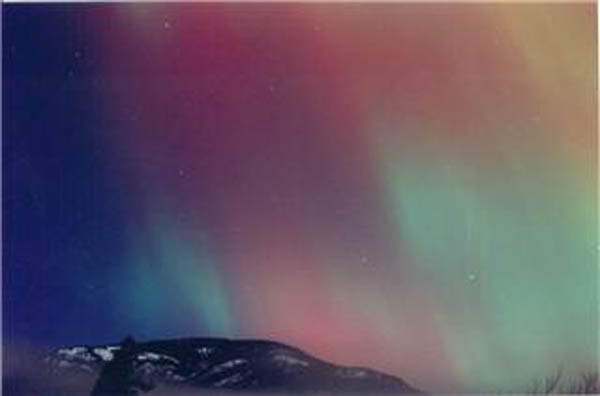 Aurora, August 17, 2003 from Hamilton, Washington, USA. You can see the rayed bands over Mt Josephine even though the photo is overexposed.Wade B Clark Jr - Hamilton, Washington, USA |