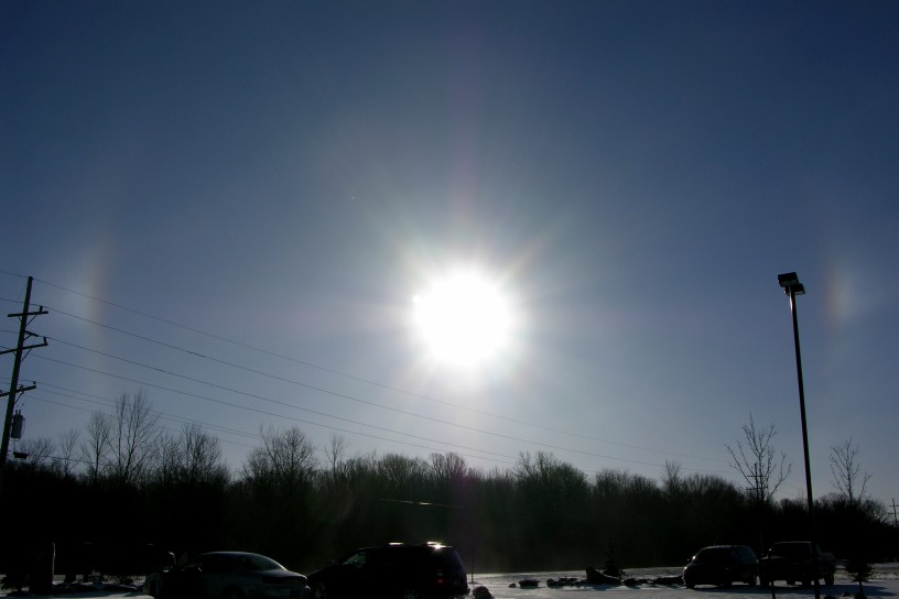 Sundogs and a full halo around the sun. Taken on the morning of Feb